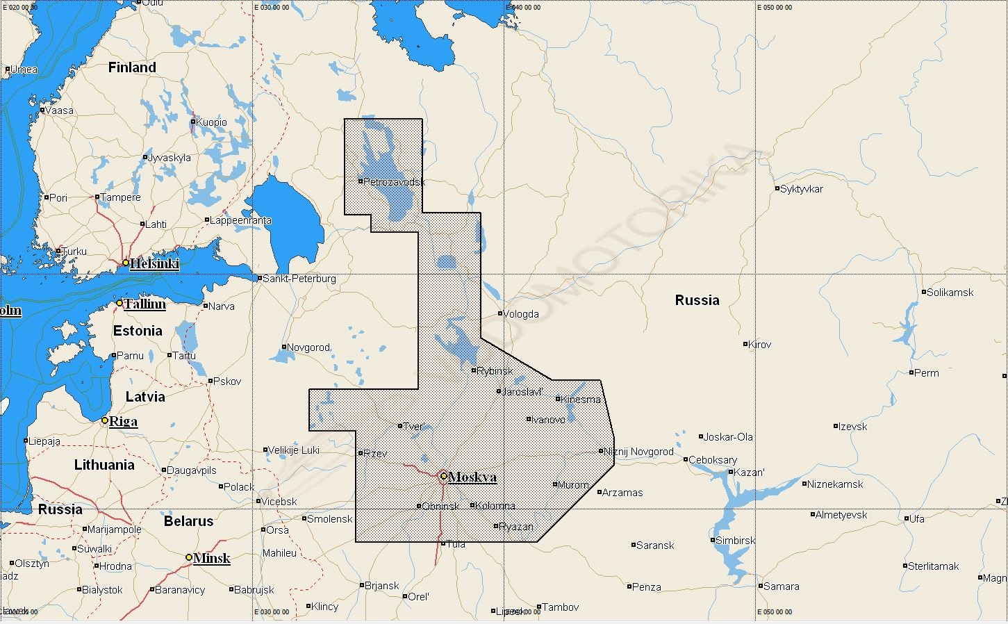 Карта глубин "Москва, Ока, Волга и Онежское озеро"- покрытие включает Онежское озеро, Белоозеро, Рыбинское вдхр, Волга, Ока.